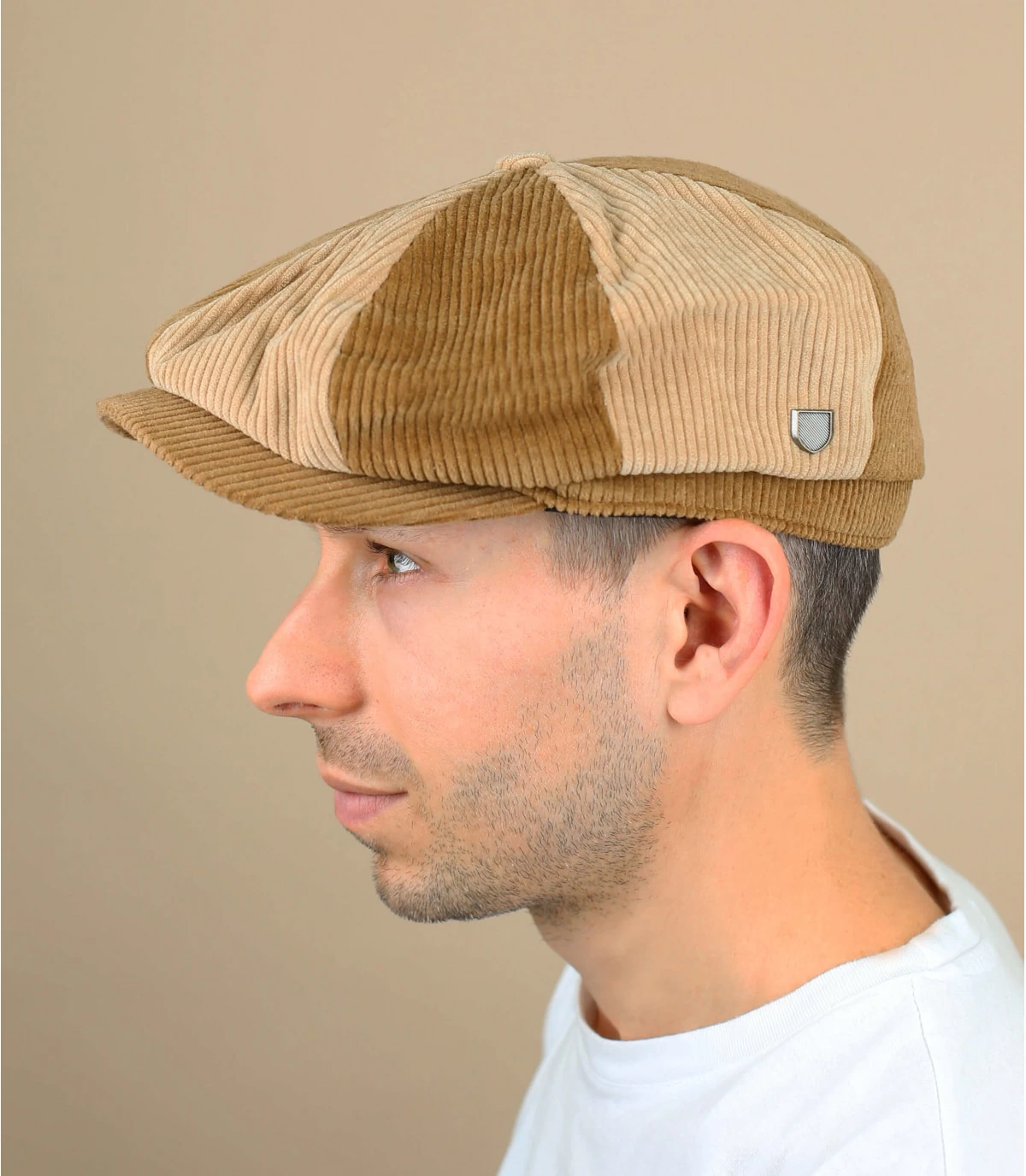 Deze gavroche baret is origineel met zijn twee tinten beige en zijn extra puffy vorm. Het is versierd met een metalen speld aan de zijkant die het Brixton logo voorstelt.